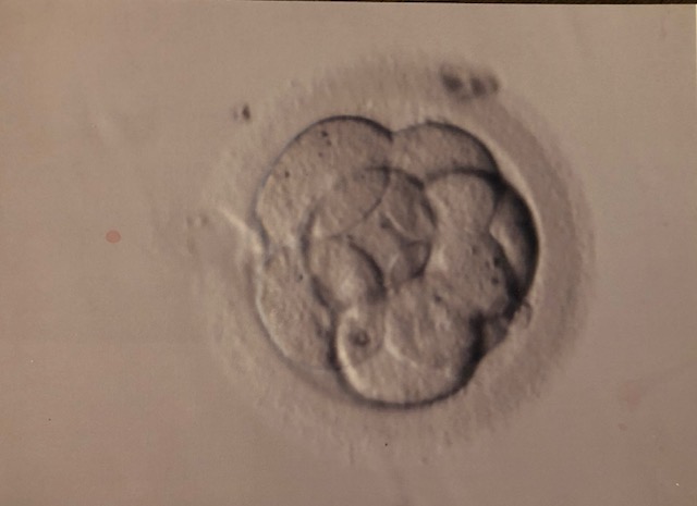 (This is the photo of the only viable embryo from our first round of IVF. This embryo was transferred but did not implant. I have been told by a psychic that a little girl watches over me and follows me around so I like to believe this is her baby picture).